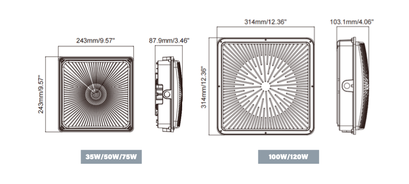 | KSCP01-75W | 9.57"x9.57"x3.46" (243×243×87.9mm) | 75 | 4000K(Optional) | >70 | 9750 | 160° | 0-10V Dimmable |