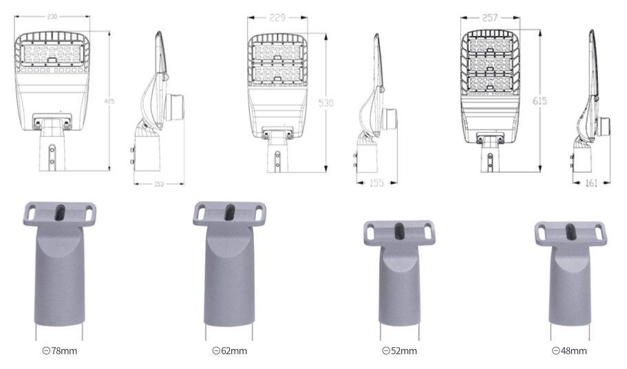 The HiTech Series LED Street Light delivers powerful, energy-efficient illumination for modern urban and industrial environments. Built with precision die-cast aluminum and equipped with high-efficiency SMD5050/3030 LEDs, it achieves up to 180 lm/W brightness with superior uniformity and longevity. Rated IP66 and IK09, it withstands harsh outdoor conditions while ensuring consistent, high-quality performance.